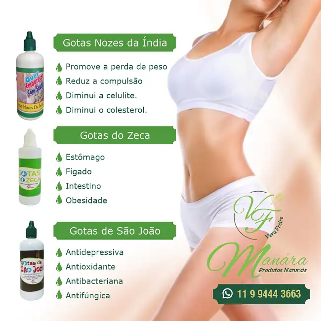 Mensagem: Produto Natural Gotas Nozes da Índia; promove a perda de peso; reduz a compulsão; diminui a celulite; diminui o colesterol; Produto Natural Gotas do Zeca; estômago; fígado; intestino; obesidade; Produto Natural Gotas de São João; Antidepressiva; Antioxidante; Antibacteriana; Antifúngica.