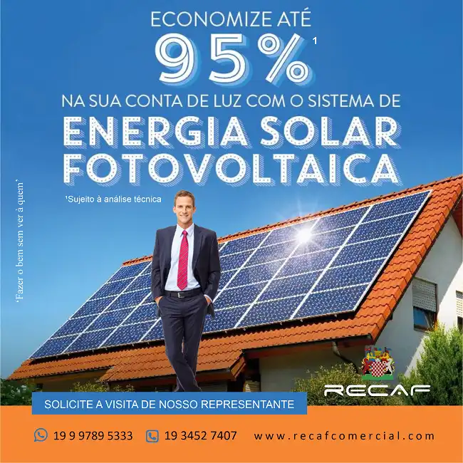 Mensagem: Economize até noventa e cinco por cento na sua conta de luz como sistema de energia solar conhecida como Energia Fotovoltaica.