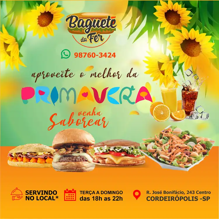 Layout Propaganda Promoção Lanchonete tema Primavera.
