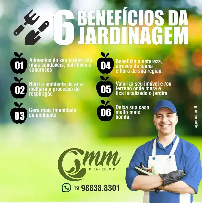 arte sobre beneficios da jardinagem criada para empresa de serviços Tipo: Propaganda para rede social Segmento: Empresa de serviços Tema: beneficios da jardinagem criada para empresa de serviços