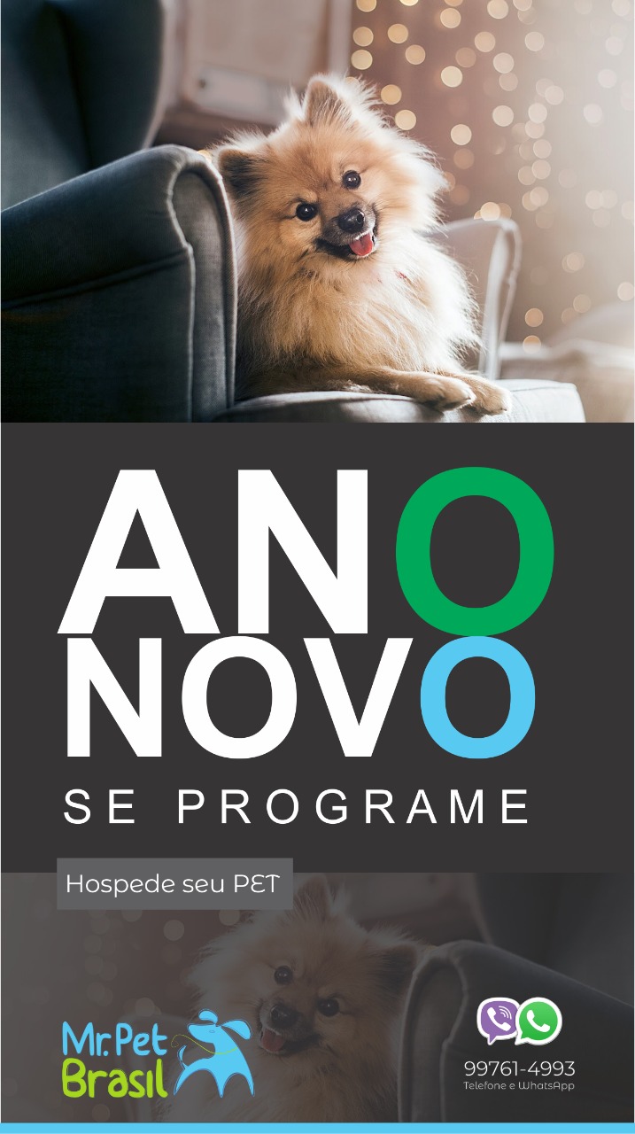 Propaganda HOTEL PET Ano Novo se programe hospede seu PET Tipo: Propaganda Redes SociaisSegmento: PetCliente: Mr. PetCores: Azul e VerdeTexto na Publicidade: Ano Novo se programe hospede seu pet