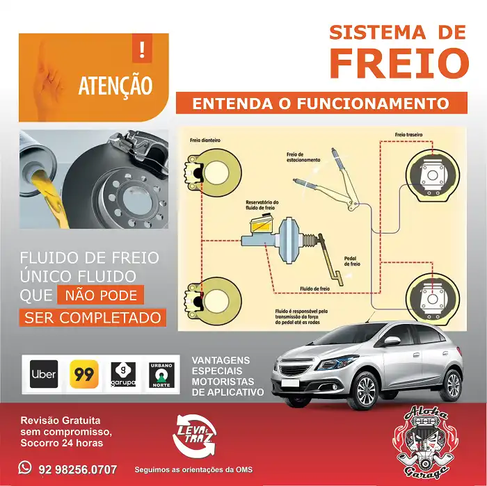 Propaganda Sistema de Freio de Carro Tipo: Propaganda para Rede Social Segmento: Oficina Mecânica, Mecânica, Centro Automotivo. Cores: Tons de Laranja com Tons de Cinza Tema: Sistema de Freio de Carro Mensagem: Sistema de Freio: entenda o funcionamento. Freio dianteiro. Reservatório do fluído do freio. Freio de estacionamento. Freio traseiro. Pedal do Freio. Fluído é … Ler mais Propaganda Sistema de Freio de Carro