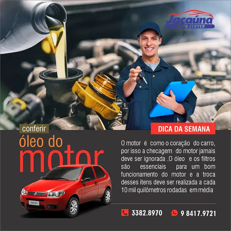 Propaganda Óleo do Motor de Carro Tipo: Propaganda para Rede Social Formato: Feed para Instagram, Facebook e Linkedin Segmento: Mecânica, Oficina Mecânica, Centro Automotivo Tema: Óleo do Motor de Carro Cores: Preto e Vermelho Mensagem: Troca de óleo de motor de carro. Dica da semana. O motor é como o coração do carro, por isso … Ler mais Propaganda Óleo do Motor de Carro