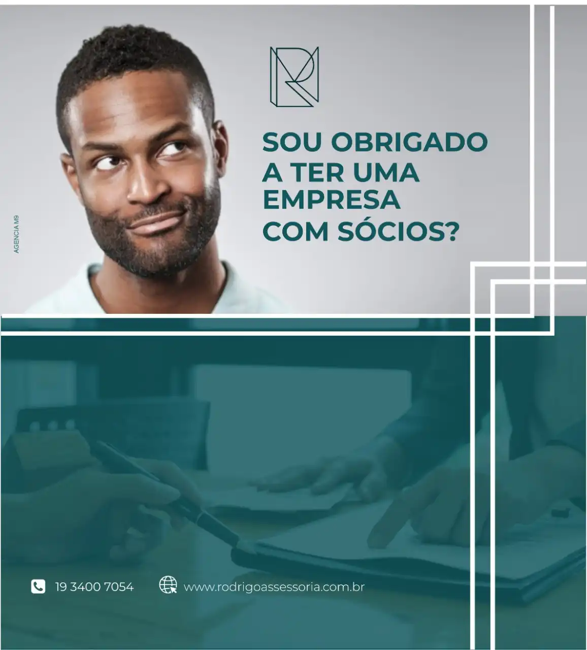 Propaganda Post Informativo Sociedade na Empresa Tipo: Propaganda para Rede SocialCliente: Rodrigo AssessoriaTema: SóciosCores: Azul e cinzaMensagem: Sou obrigado a ter uma empresa com sócios?