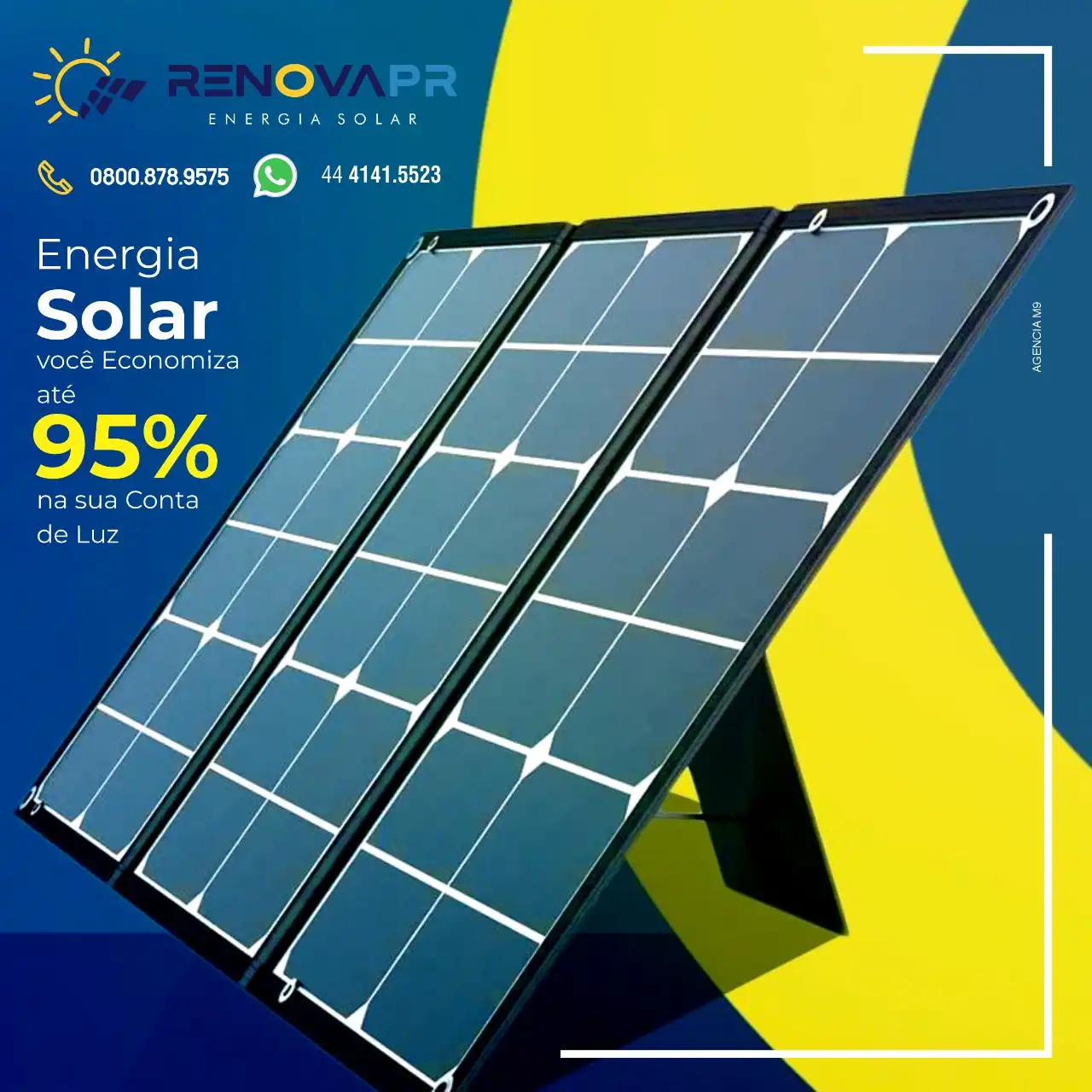 Propaganda Post Instalação de Energia Solar Fotovoltaíca Tipo: Propaganda para Rede SocialCliente: Renovar Energia SolarTema: Energia solarCores: Amarelo e azulMensagem: Energia solar, você economiza até 95% de sua conta de luz.