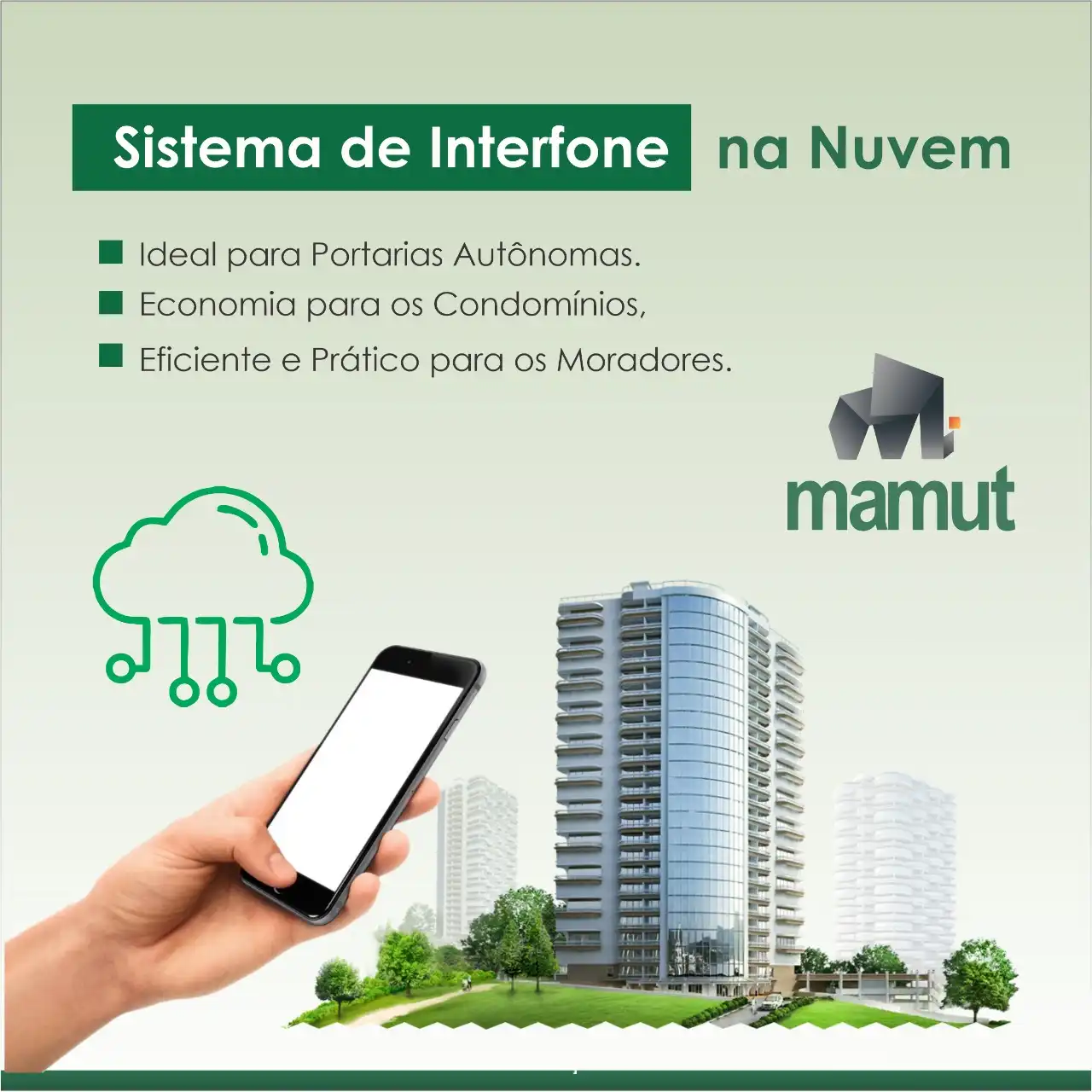 Propaganda Post Sistema de Interfone na Nuvem Tipo: Propaganda para Rede SocialCliente: MamutTema: InterfoneCores: Verde e brancoMensagem: Sistema de interfone na nuvem Ideal para portarias autônomas;Economia para os condomínios;Eficiente e prático para os moradores;
