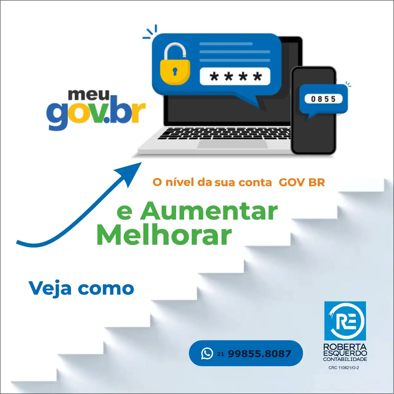 Propaganda Post Nível da Conta GOV Br Tipo: Propaganda para Rede SocialCliente: Roberta Esquerdo ContabilidadeTema: Conta gov brCores: Azul, verde e brancoMensagem: O nível da sua conta GOV BR veja como aumentar e melhorar.