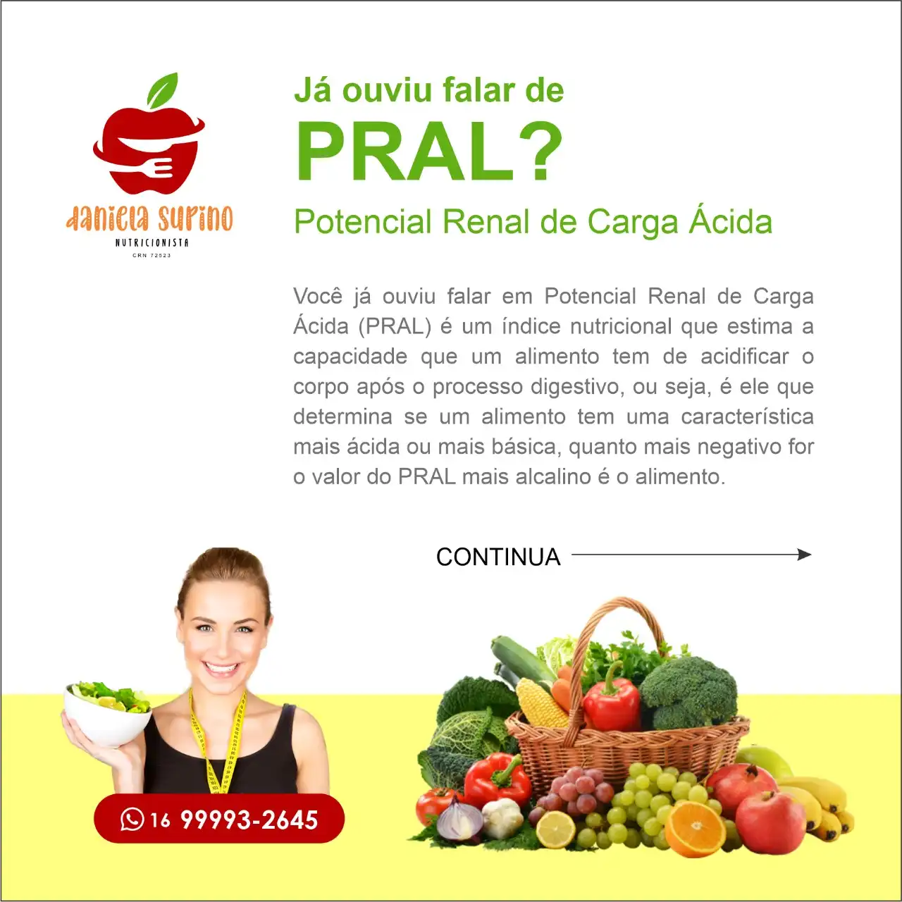 Propaganda post Potencial Renal de Carga Ácida Tipo: Propaganda para Rede SocialCliente: Daniela Supino NutricionistaTema: PRALCores: Vermelho, verde e amareloMensagem: Já ouviu falar de PRAL? Potencial Renal de Carga Ácida Você já ouviu falar em Potencial Renal de Carga Ácida (PRAL) é um índice nutricional que estima a capacidade que um alimente tem de acidificar … Ler mais Propaganda post Potencial Renal de Carga Ácida