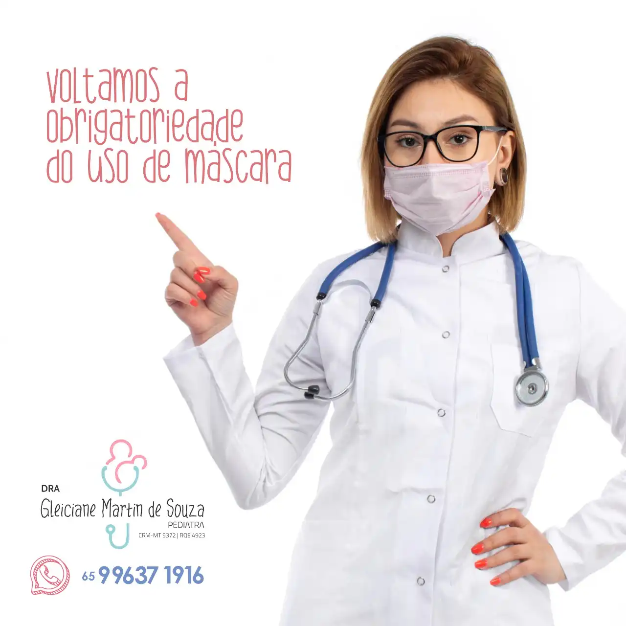 Propaganda Post Obritoriedade do Uso de Máscara Tipo: Propaganda para Rede SocialCliente: Dra. Gleiciane Martin de SouzaTema: MáscaraCores: Branco, azul e rosaMensagem: Voltamos a obrigatoriedade do uso da máscara.